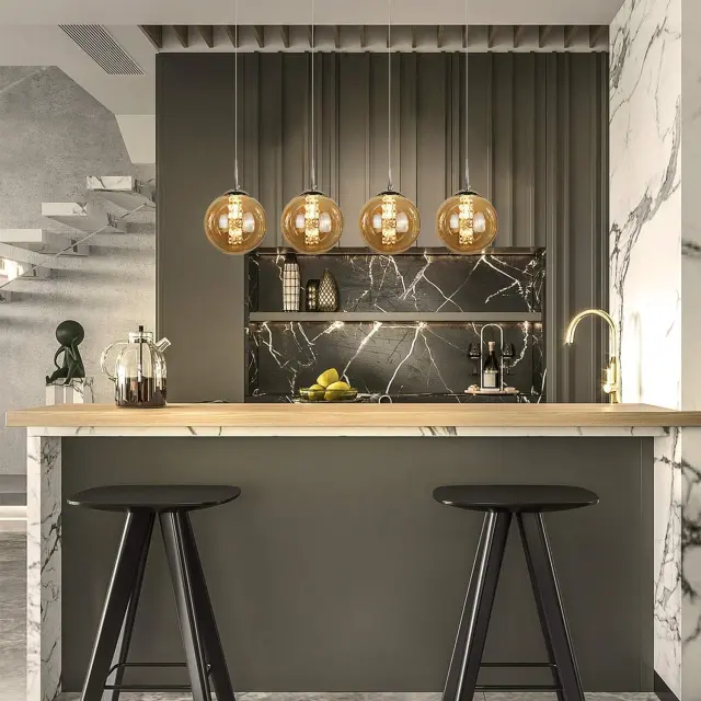 NETTLIFE viseča svetilka iz jantarjevega stekla Diam.70cm G9 nastavljiva po višini jedilna miza s 4 žarnicami jantar kuhinjska