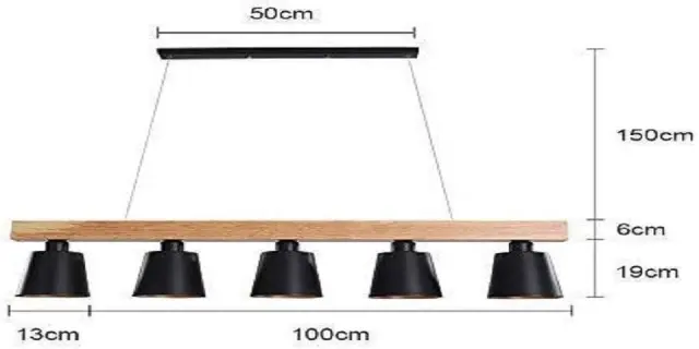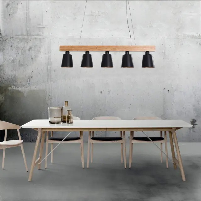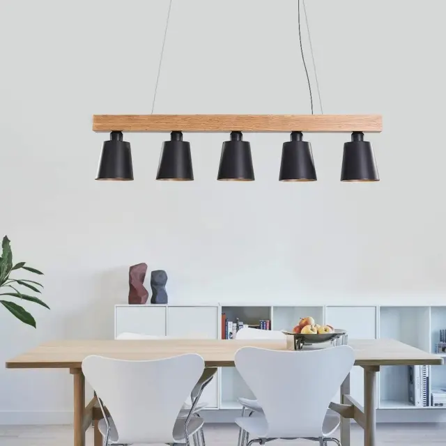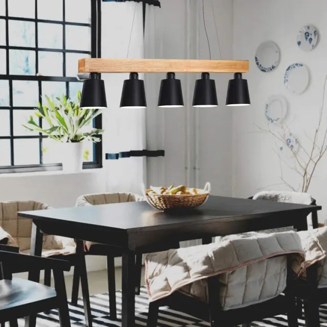 NETTLIFE Viseča svetilka 5 žarnic E27 Črna Diam.102cm Moderna Kovina in Les Jedilna soba Spalnica Kuhinja Hodnik