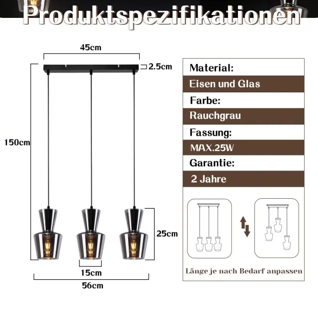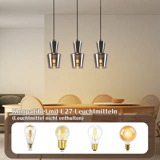 NETTLIFE viseča svetilka za jedilno mizo, vintage dimno sivo steklo E27 za dnevno sobo ali kuhinjo