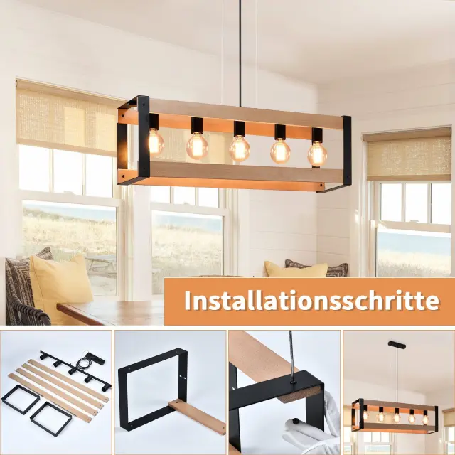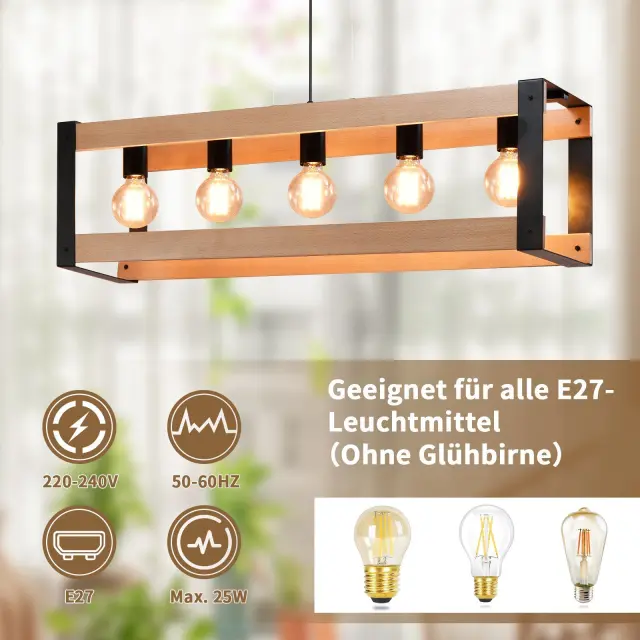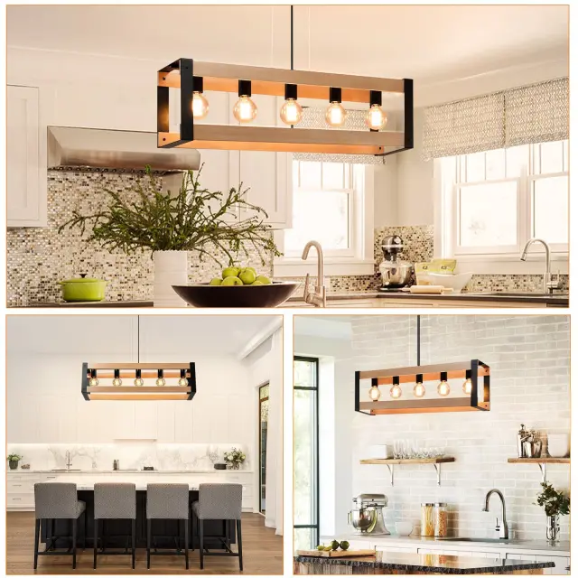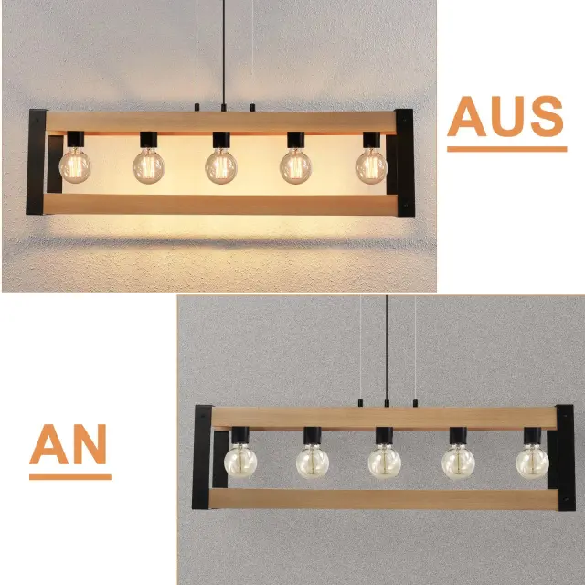 NETTLIFE viseča svetilka za jedilnico, vintage lesena črna E27 5 plamenov, industrijska jedilna miza