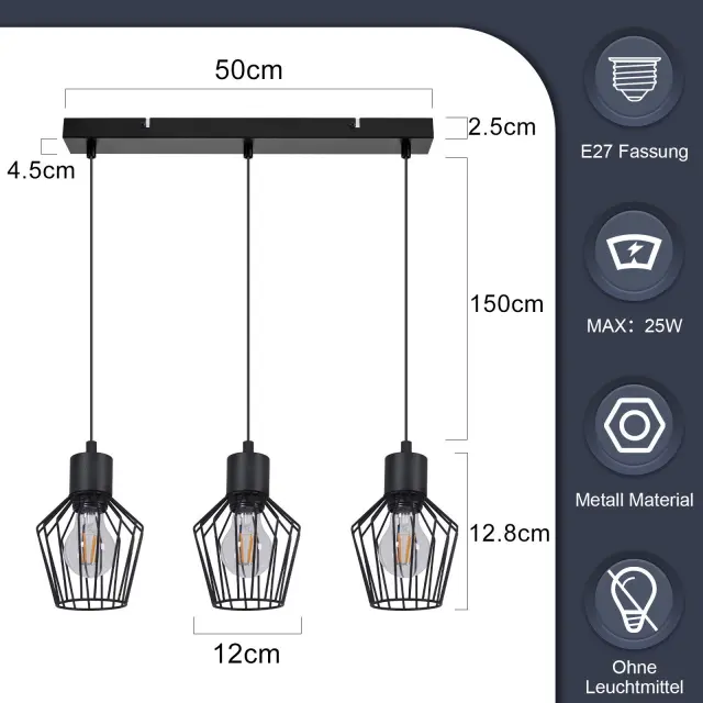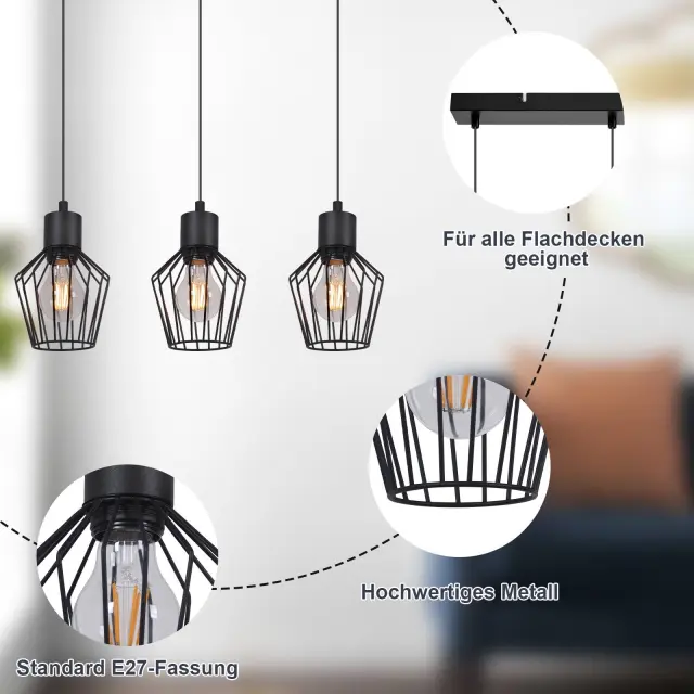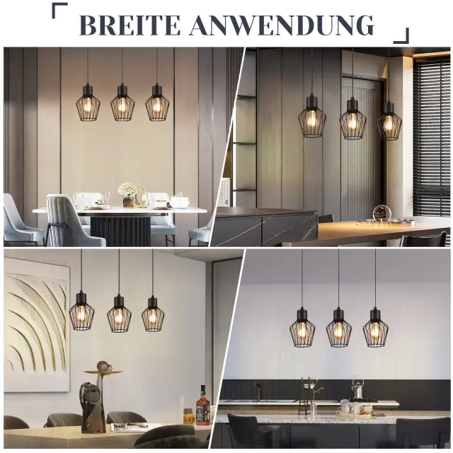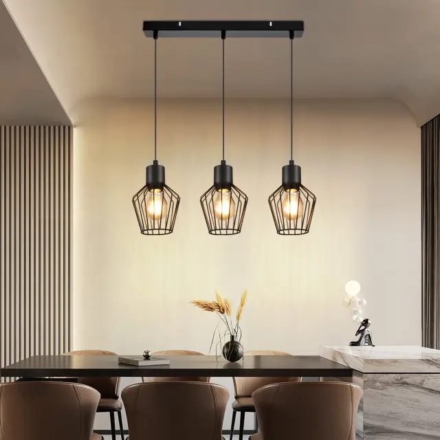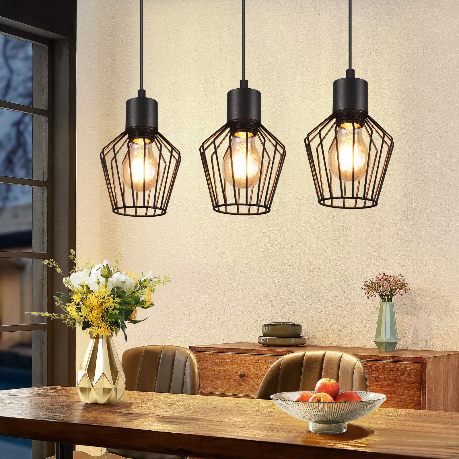 NETTLIFE viseča svetilka s 3 plameni, industrijska kovinska črna LED E27 kovina