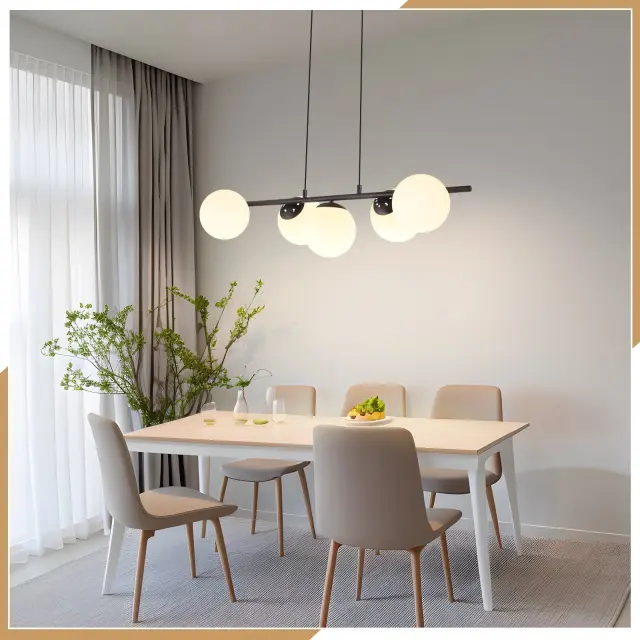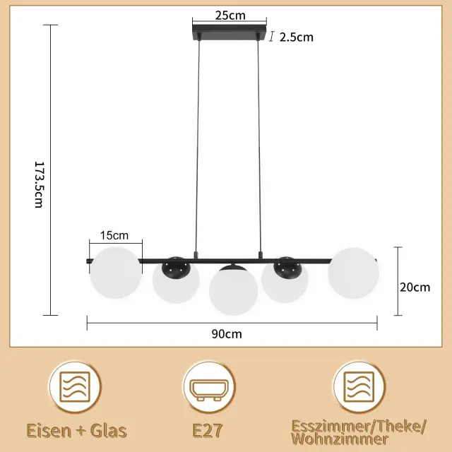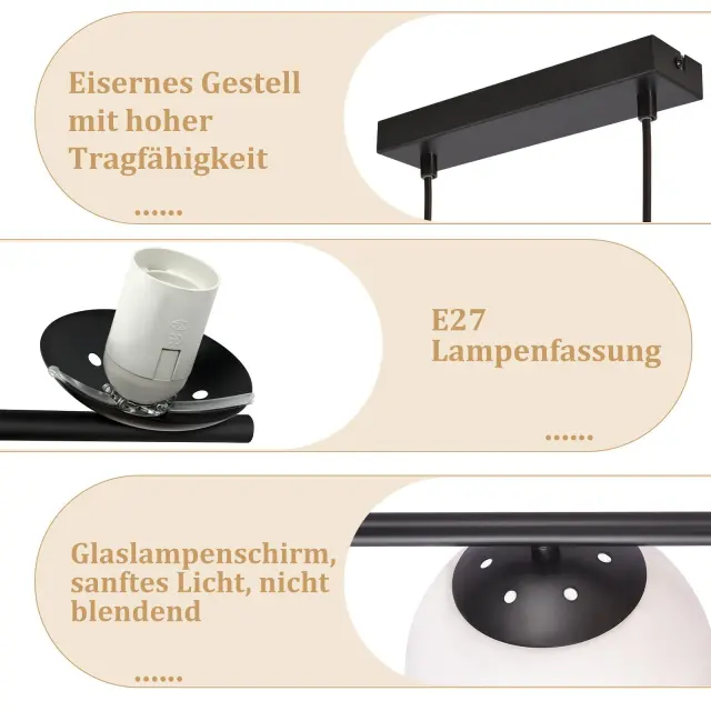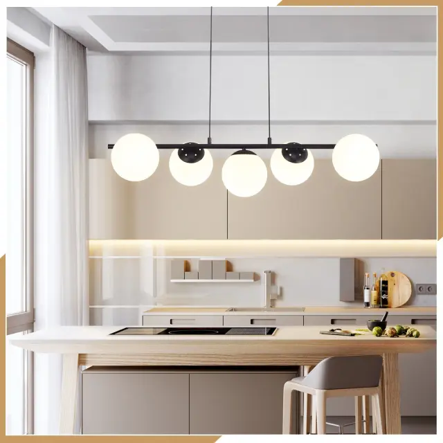 NETTLIFE viseča svetilka črna E27 steklena viseča svetilka 5-plamenska moderna jedilna svetilka 150CM