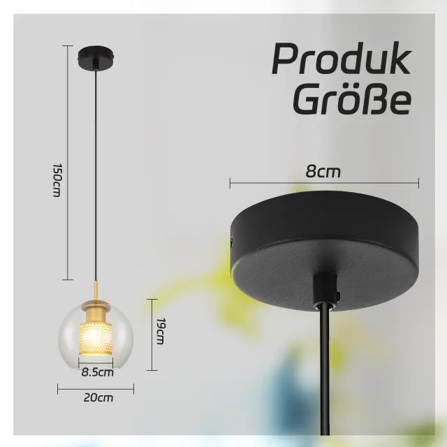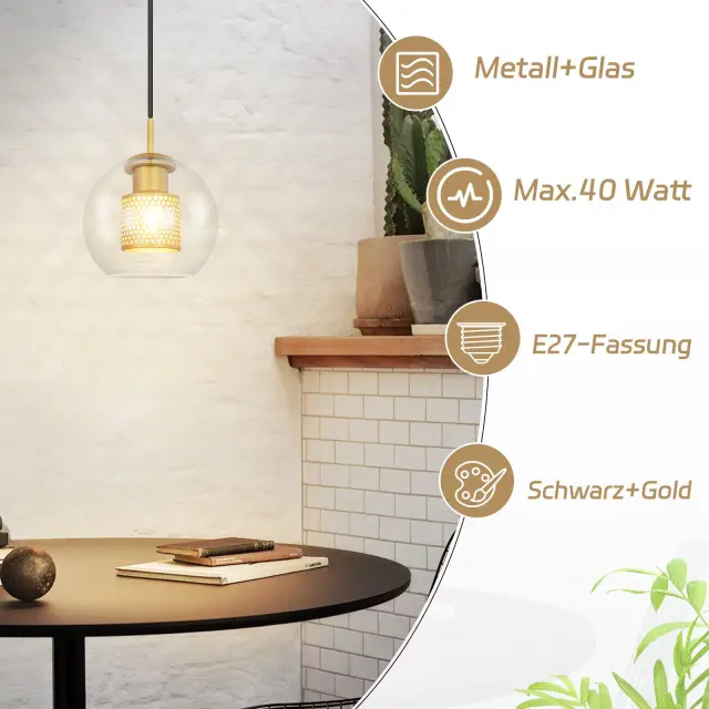 NETTLIFE viseča svetilka za jedilnico iz stekla - 1 plamen Vintage E27 viseča svetilka črna