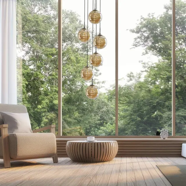 NETTLIFE viseča svetilka steklo premer 31cm G9 jantar jedilna miza nastavljiva po višini 6 luči v kuhinji dnevna soba spalnica