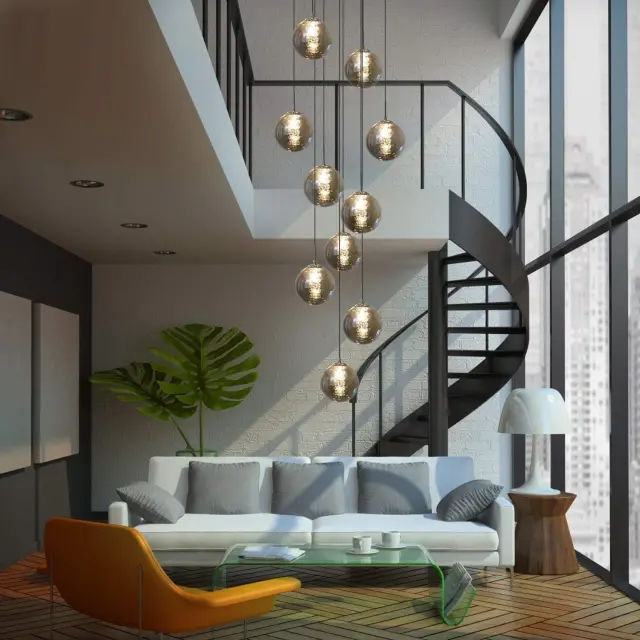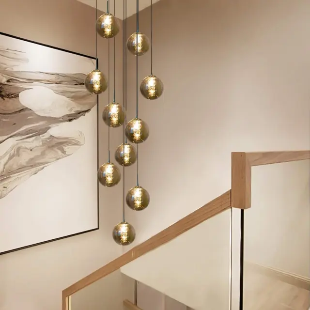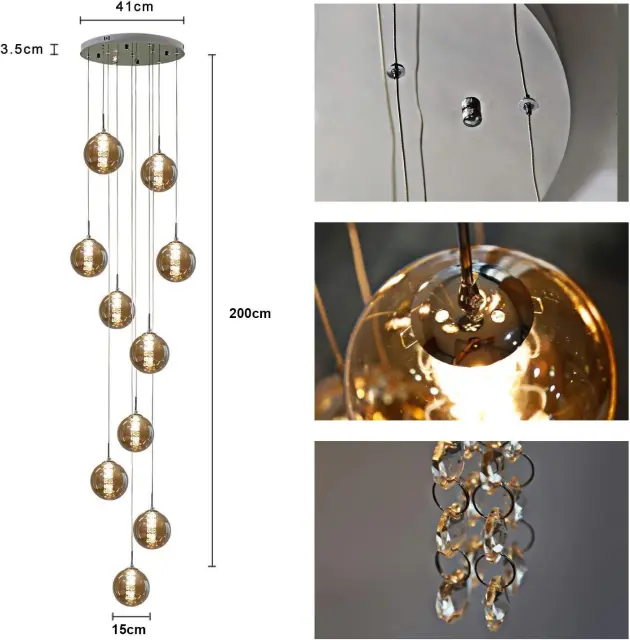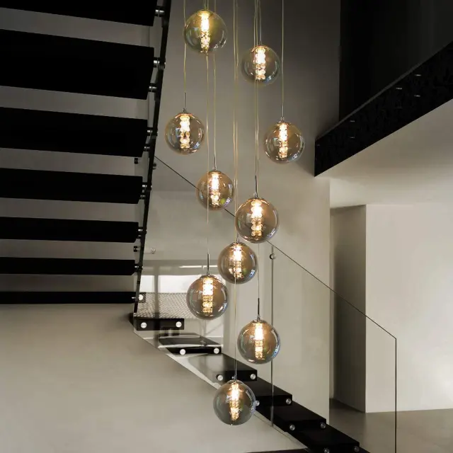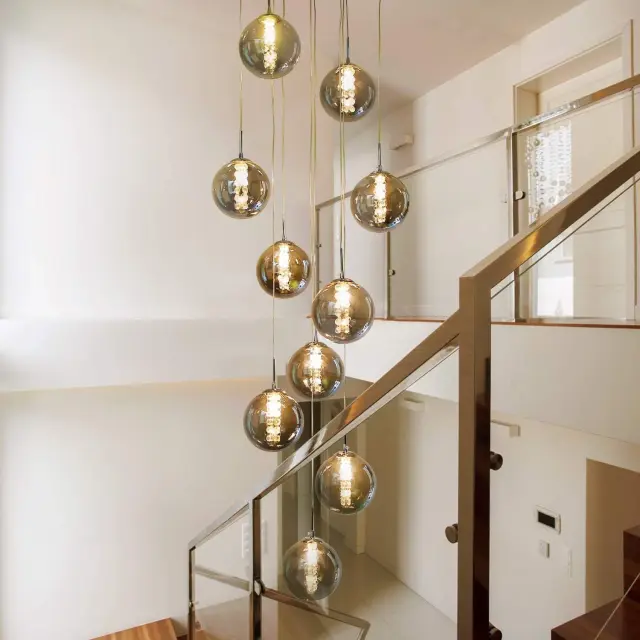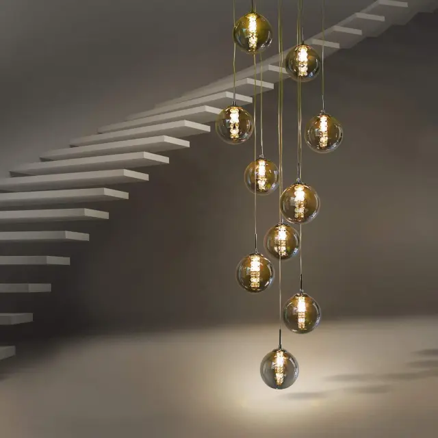 NETTLIFE Viseča svetilka s sivim steklom, premer 41 cm, G9 lestenec z 10 žarnicami v barvi, svetilka