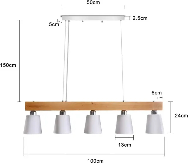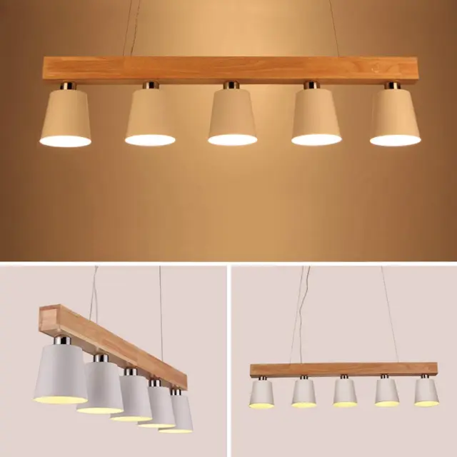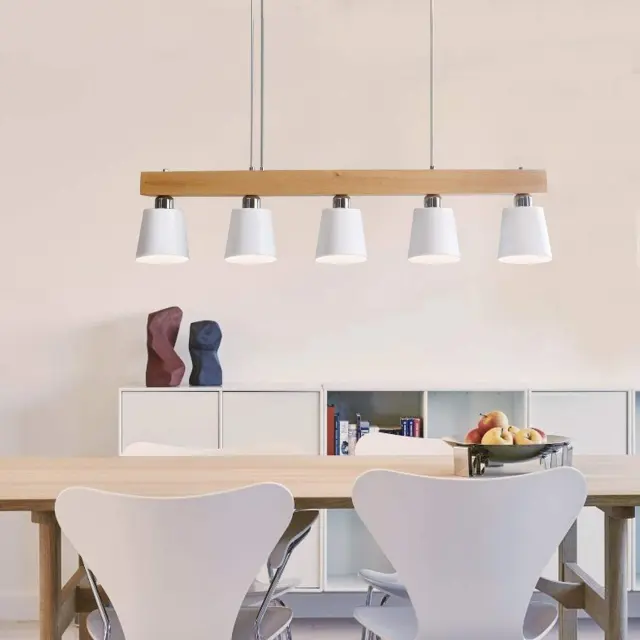 NETTLIFE viseča svetilka 5 žarnic E27 bela moderna kovina in les jedilna svetilka premer 102cm za kuhinjo dnevno sobo hodnik hotel
