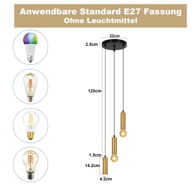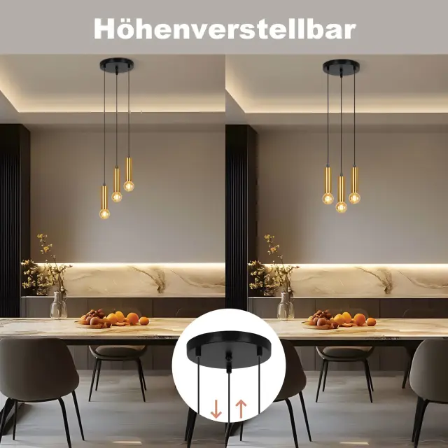 NETTLIFE viseča svetilka 3 žarnice zlata E27 industrijska jedilna miza kovinska