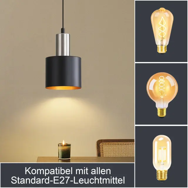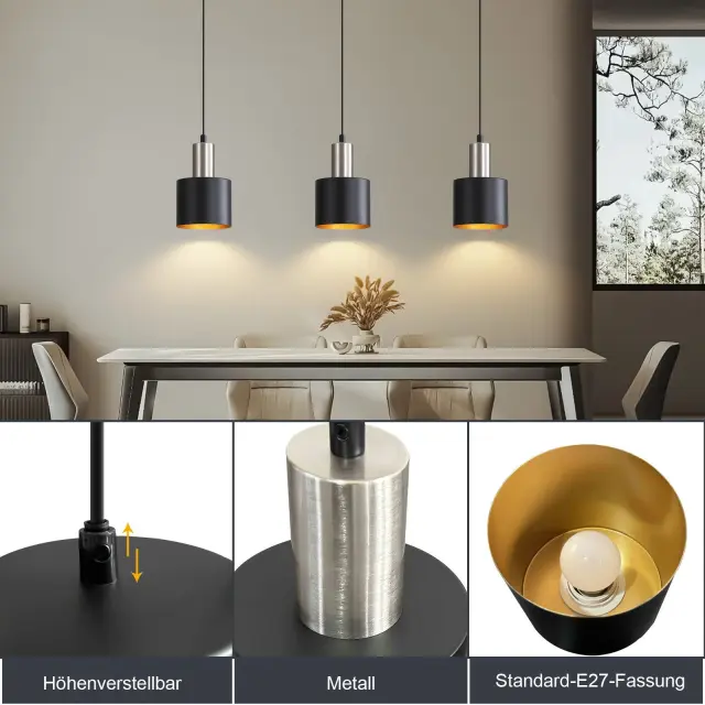 NETTLIFE viseča svetilka za jedilno mizo E27 črna retro nastavljiva višina