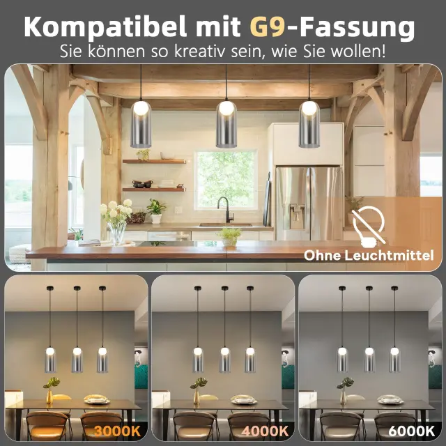NETTLIFE Viseča svetilka 1. Vintage Za Jedilno Mizo Dimno Siva G9 Ovalna Nastavljiva Višina Za Dnevno Sobo