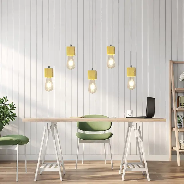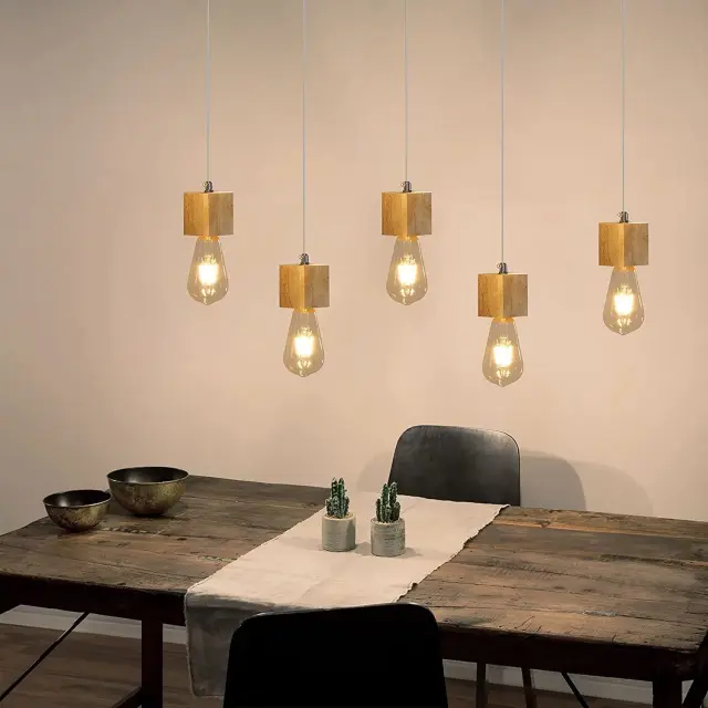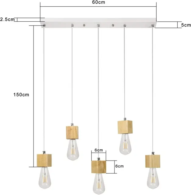 NETTLIFE Viseča svetilka s 5 plameni E27 les Vintage Diam.60cm za jedilnico kuhinjo dnevno sobo, brez žarnice
