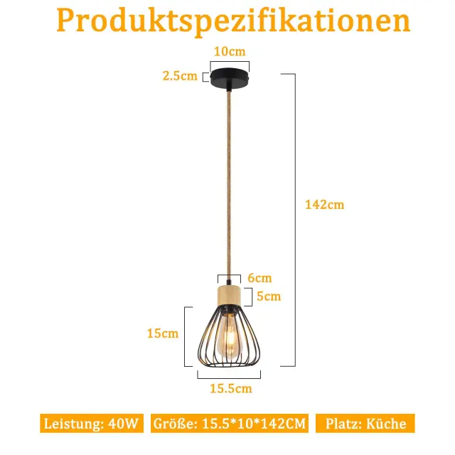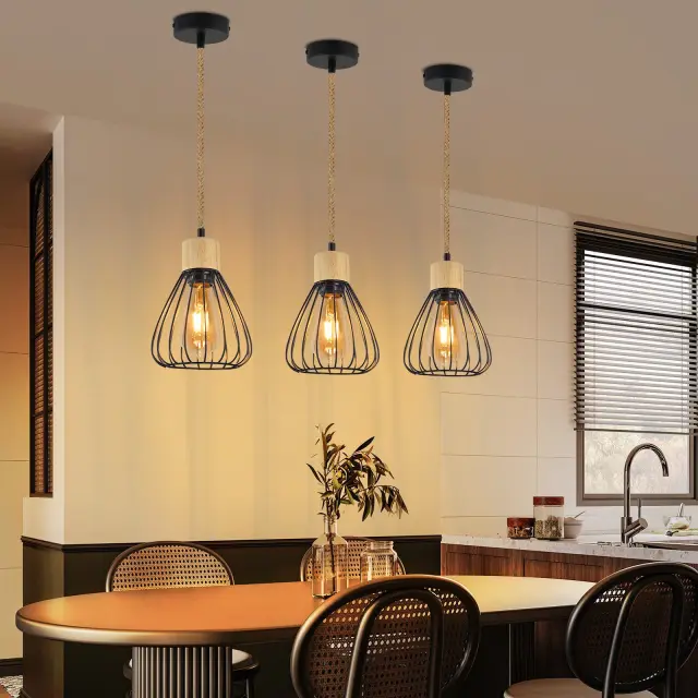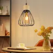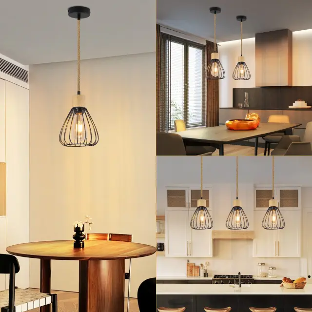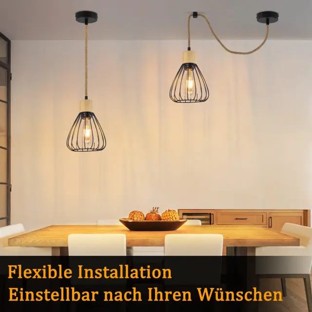 NETTLIFE viseča svetilka za jedilno mizo, črna kovina, 1 plamen, retro vrv iz konoplje, industrijski les E27