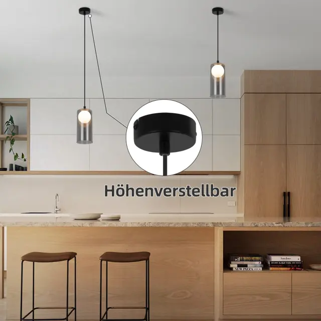 NETTLIFE viseča svetilka 1. Vintage za jedilno mizo, dimno siva, G9, ovalna, nastavljiva višina, za dnevno sobo