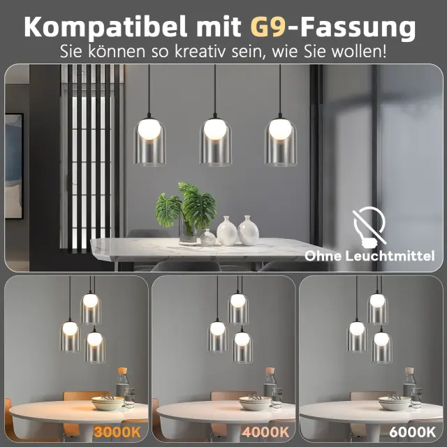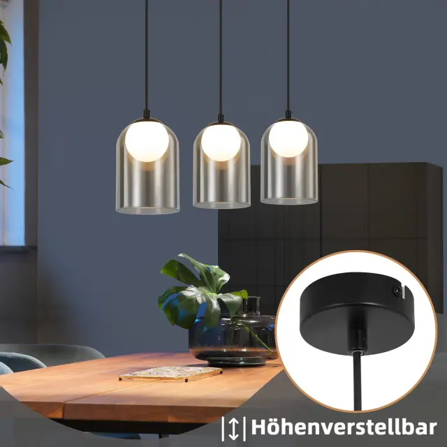 NETTLIFE Viseča svetilka 1. Vintage Za Jedilno Mizo Dimno Siva G9, Ovalna Nastavljiva Višina
