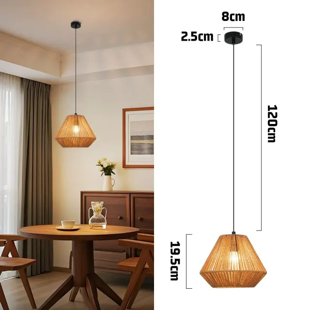 NETTLIFE viseča vintage jedilna miza z 1 žarnico, vrvjo iz konoplje, lanterna dizajn E27 svetilka za jedilnico