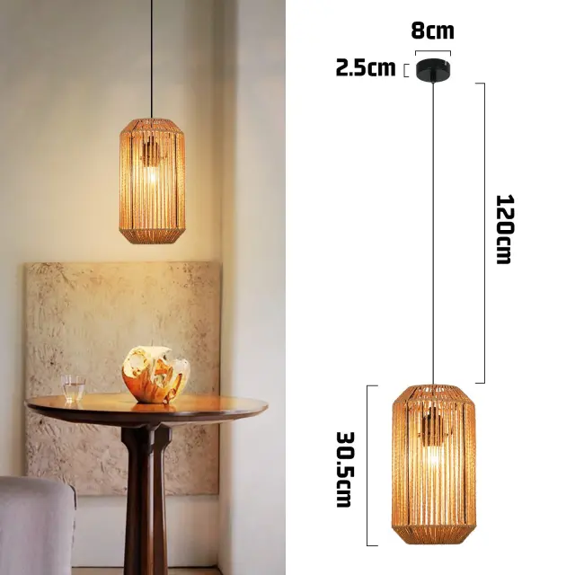 NETTLIFE viseča vintage jedilna miza z 1 žarnico, vrvjo iz konoplje, lanterna dizajn E27 svetilka za jedilnico
