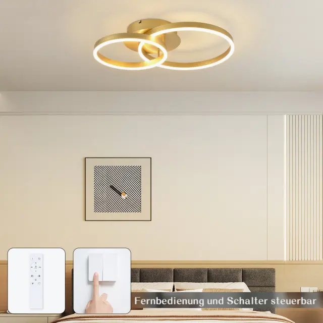 NETTLIFE Zatemnilna LED stropna svetilka, črna svetilka za dnevno sobo, moderna svetilka za spalnico, 46 W, 2 obroča