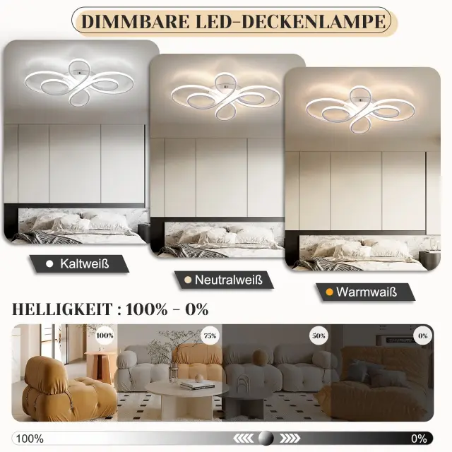 NETTLIFE Zatemnljiva LED stropna svetilka 80 cm bela 78 W moderna oblika za dnevno sobo z daljinskim upravljalnikom idealna