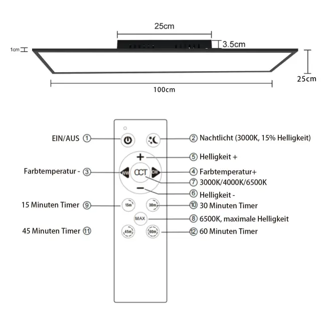 NETTLIFE Zatemnljiva LED stropna svetilka 100x25 cm z daljinskim upravljalnikom črna 24W
