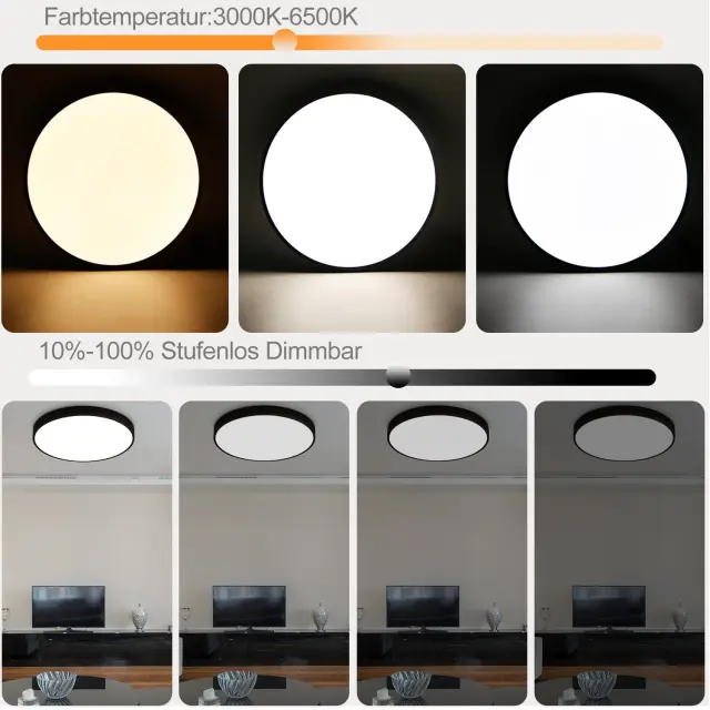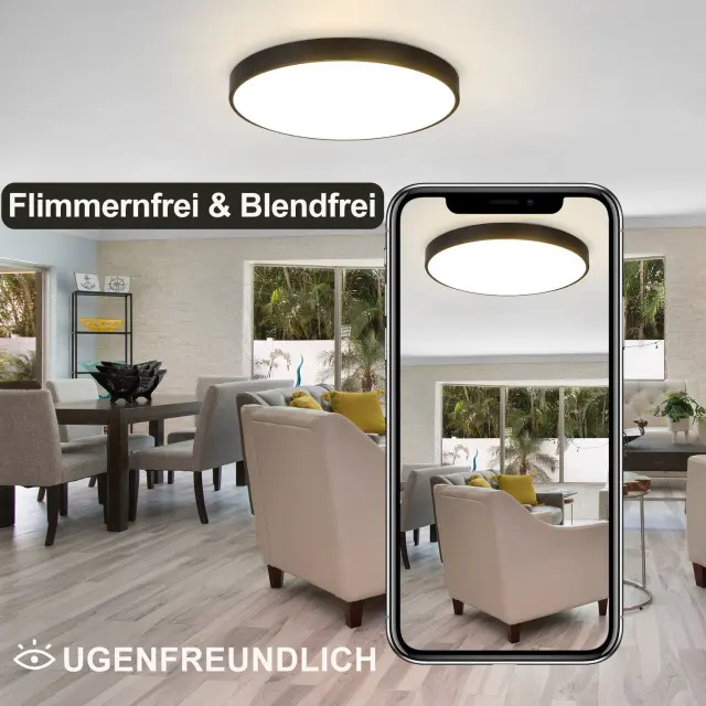 NETTLIFE zatemnljiva LED stropna svetilka z daljinskim upravljalnikom 36W kopalniška svetilka črne barve IP44 vodoodporna ravna 37 cm okrogla