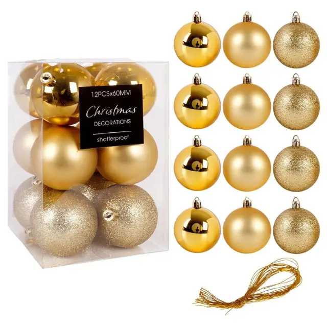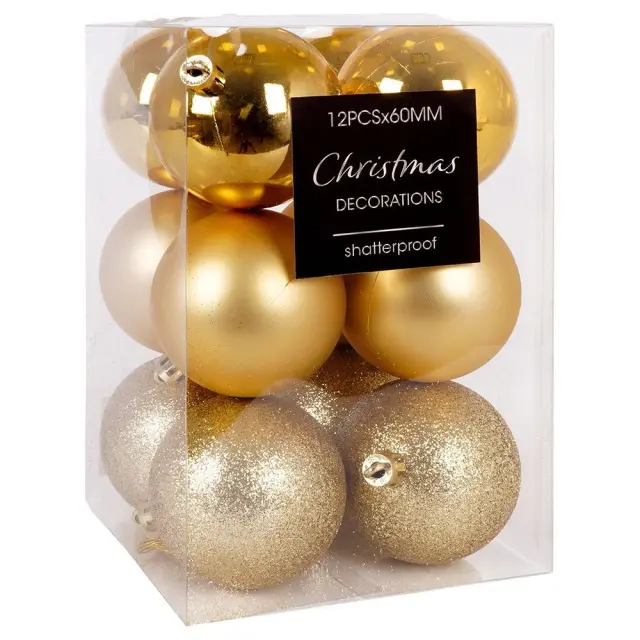 Nezlomljive zlate kroglice za božično drevo 6 cm 12 kosov.