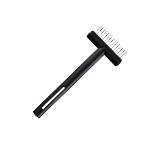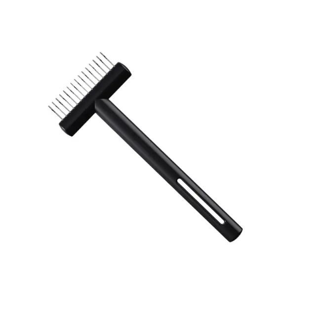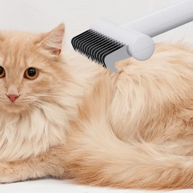 Učinkovito odstranjevanje vozlov: Ta glavnik za odstranjevanje vozlov je strokovno zasnovan za nežno in učinkovito odstranjevanje vozlov, zapletov in odvečne dlake s dlake vašega psa ali mačke. Rezila iz nerjavečega jekla so skrbno razporejena, da prerežejo vozle, ne da bi vlekli ali povzročali nelagodje, zaradi česar je nega brez stresa za vas in vašega kosmatega prijatelja. Redna uporaba tega glavnika pomaga preprečevati nastanek vozlov, ohranja dlako vašega ljubljenčka zdravo in sijočo. Primeren je za vse pasme in vrste dlake, kar zagotavlja urejen videz vašega ljubljenega spremljevalca. Idealen za dolgodlake pasme, nagnjene k vozlom, je to orodje nepogrešljivo za vsakega lastnika hišnih ljubljenčkov, ki želi ohraniti higieno in udobje svojega ljubljenčka.