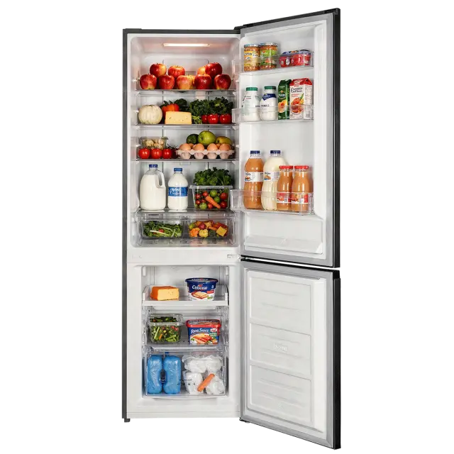 Hladilni del s prostornino 182 litrov vključuje tri steklene police, prostoren predal za sadje in zelenjavo ter tri vratne police za maksimalno preglednost. Priložen PizzaTray omogoča priročno shranjevanje zamrznjenih pic ali drugih prigrizkov. Zamrzovalni del nudi 71 litrov prostornine s tremi predali in zmogljivostjo zamrzovanja 3,2 kg v 24 urah. Antibakterijska zaščita pa poskrbi za higiensko neoporečno okolje vaših živil.