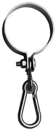 Nihajna objemka z vpenjalom, elektrolitsko pocinkana. Vpenjala 10*100 mm, mere objemke: - premer 100 mm, - širina 35 mm, - debelina 2 mm, s plastično zaščito.