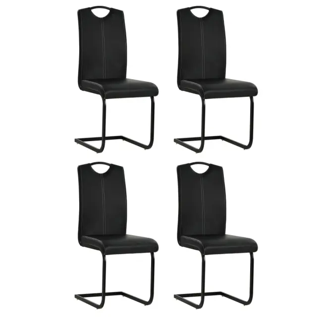 Stoli so oblečeni v umetno usnje in podloženi s peno, zato so udobni, vašim notranjim prostorom pa bodo dodali razkošen videz. Trden jeklen okvir stolom zagotavlja stabilnost in trpežnost. Komplet stolov je preprost za sestavo.