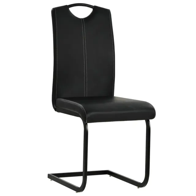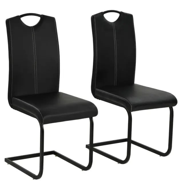 Stoli so oblečeni v umetno usnje in podloženi s peno, zato so udobni, vašim notranjim prostorom pa bodo dodali razkošen videz. Trden jeklen okvir stolom zagotavlja stabilnost in trpežnost. Komplet stolov je preprost za sestavo.