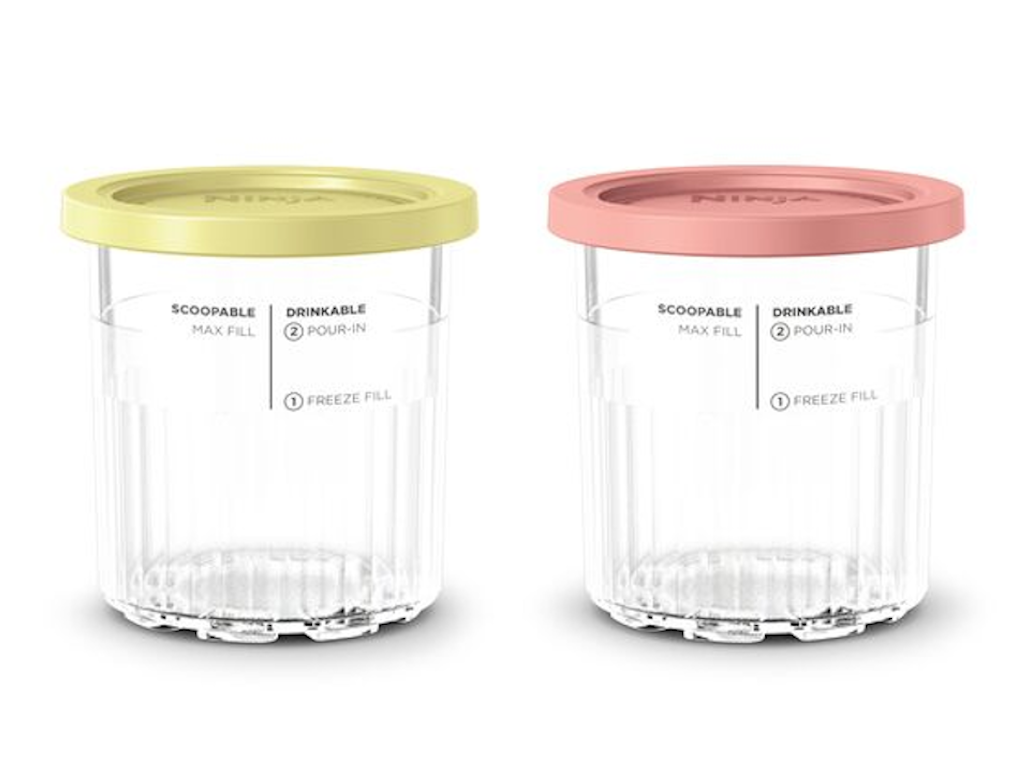 Komplet vključuje 2 posodici za Creami Deluxe s pokrovčkoma v živahnih barvah – roza in rumeni – za enostavno ločevanje okusov ali uporabo po meri.