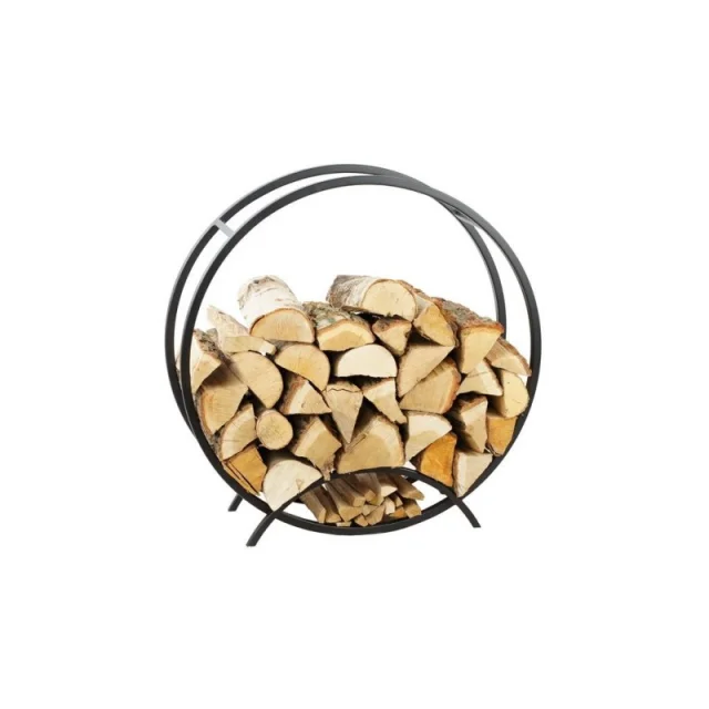 NIRI okrogel nosilec za polena iz črnega jekla z nogami Ø 80 cm