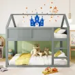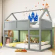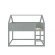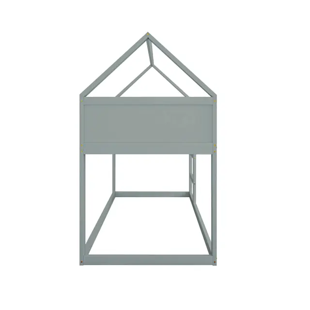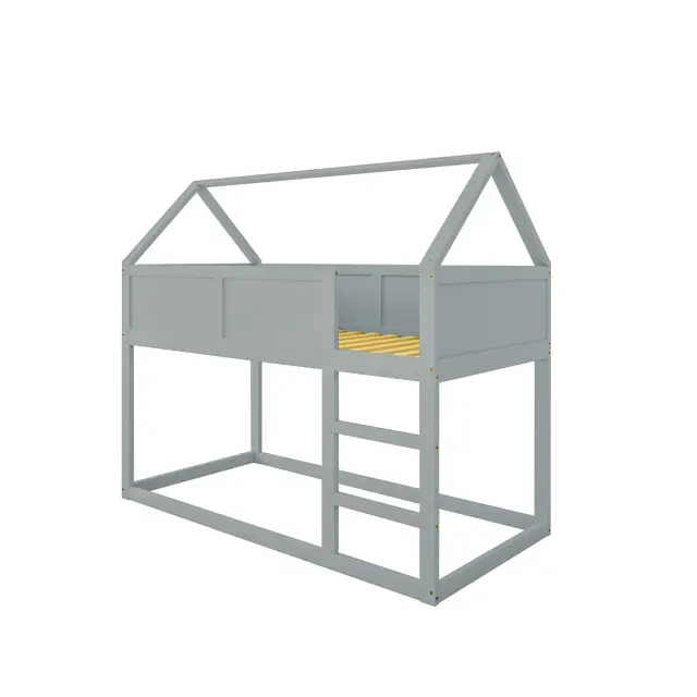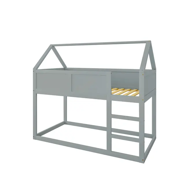 Nizek pograd z enojno posteljo nad enojno posteljo in lestvijo, okvir iz masivnega lesa, siva (90x200 cm)
