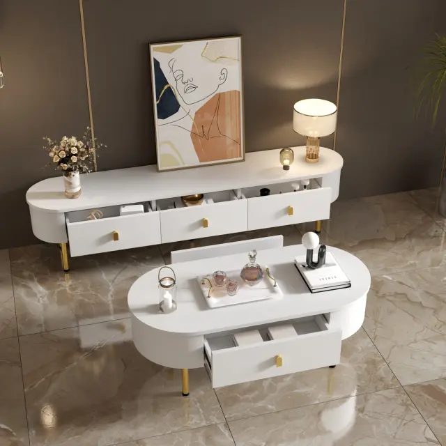 Nizka omarica s predali, zaobljeni vogali, zlati ročaji/noge