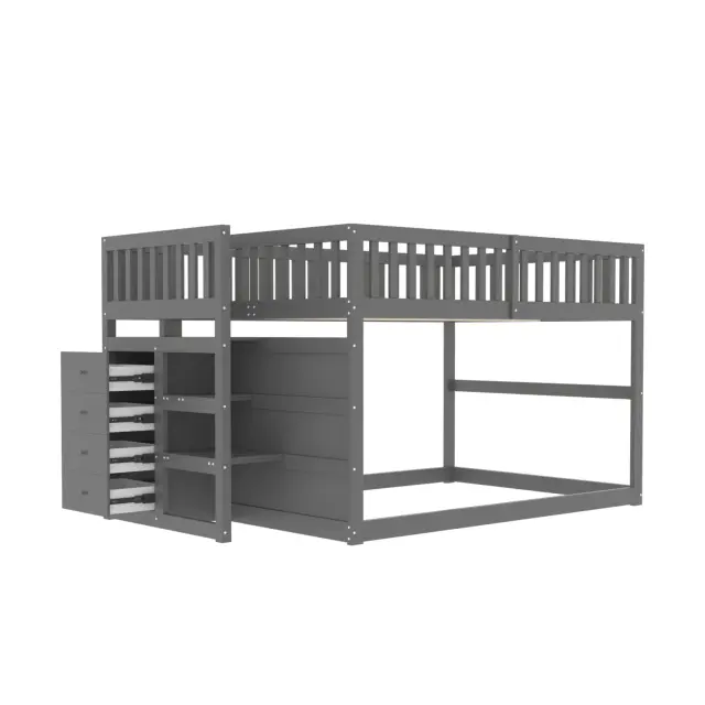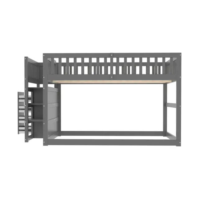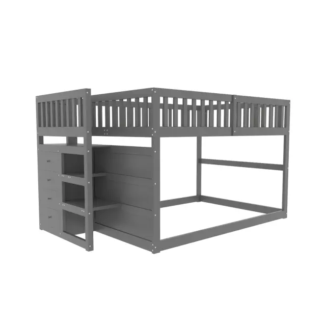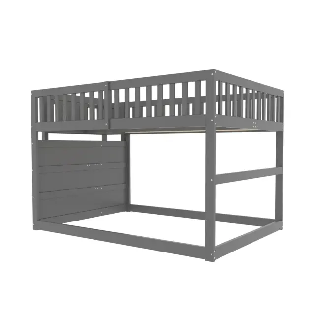 Nizka pogradna postelja 140x200 cm, s predalom za shranjevanje, lesena postelja, siva