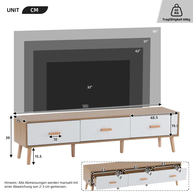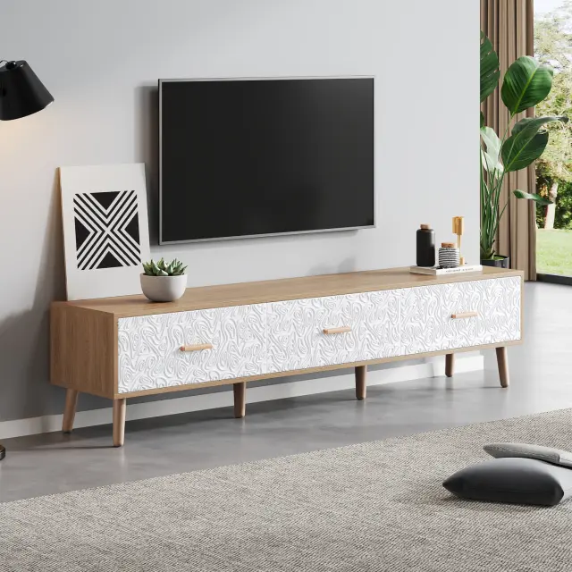 Nizka TV omarica, svetel les, vintage vzorec, 150x35x39 cm
