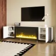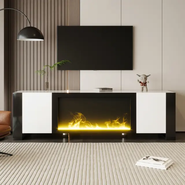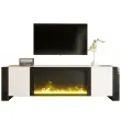 Ta TV omarica z električnim kaminom združuje visokosijajno belo barvo s črnimi poudarki za sodoben videz. Ponuja veliko prostora za shranjevanje in realistične učinke plamena.