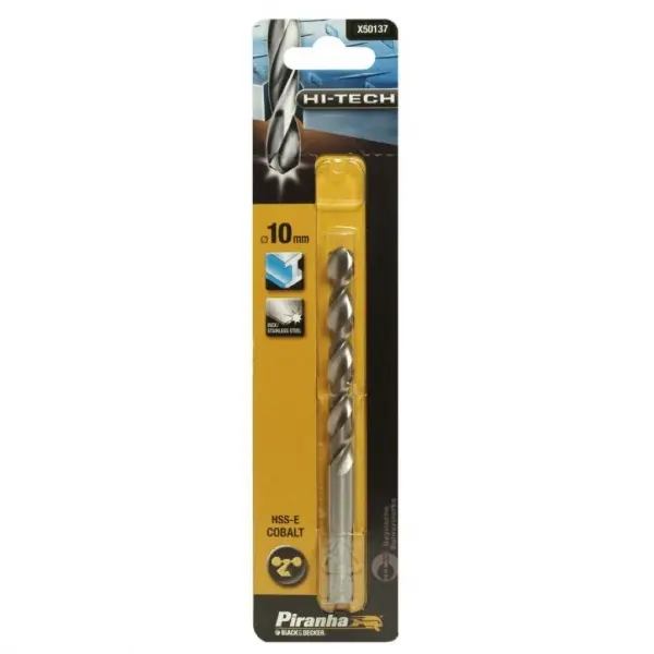 Opis izdelka za X50137 – Sveder za kovino: X50137 je visokokakovosten HSS-E Cobalt sveder za kovino iz serije Piranha Hi-Tech. Namenjen je profesionalni uporabi pri vrtanju v zahtevne materiale, kot so legirana in nelegirana jekla, lito železo ter druge trde kovine. Glavne značilnosti: Material: HSS-E z dodatkom kobalta (Cobalt) – izjemna trdota in odpornost na visoke temperature Premer: 10,0 mm Skupna dolžina: 133 mm Delovna dolžina: 87 mm Tip: Jobber sveder z ravnim steblom (cylindrical shank) Posebej primeren za trde in težko obdelovalne materiale Odlična vzdržljivost in dolga življenjska doba Sveder odlikuje precizna brušena spirala in ostra geometrija, ki omogočata hitro odvajanje ostružkov in čisto vrtanje brez pregrevanja. Idealna izbira za delavnice, servise, gradbišča in industrijo, kjer potrebujete zanesljiv sveder za kovino.