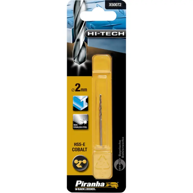X50072 je profesionalni kobaltni sveder za kovino premera 2,0 mm iz serije Piranha Hi-Tech (Black Decker / Stanley). Izdelan je iz visokokakovostnega HSS-E Cobalt materiala, ki odlično prenaša visoke temperature in je izjemno odporen na obrabo. Zaradi tega je posebej primeren za vrtanje v trde materiale, kot so legirana jekla, nerjavno jeklo (inox), lito železo in druge zahtevne kovine. Glavne značilnosti: Premer: 2,0 mm Material: HSS-E Cobalt (z dodatkom kobalta) Dolžina: približno 49 mm (standardni jobber format) 135° konica za dobro centriranje in učinkovito rezanje Visoka odpornost na vročino in obrabo Primerna za ročne in stojne vrtalne stroje Odlična vzdržljivost pri vrtanju v trde kovine Ta majhen, a zelo trpežen sveder je idealen za precizna dela v servisu, delavnici, avtoservisu ali pri izdelavi prototipov, kjer potrebujete majhen premer in visoko zmogljivost.