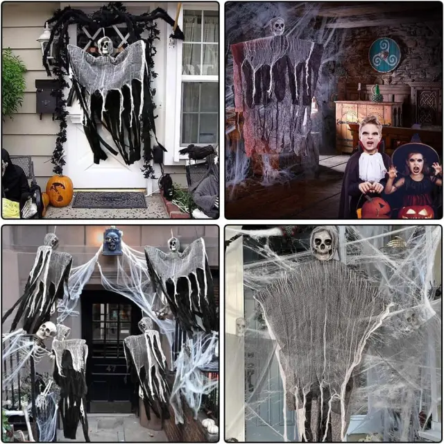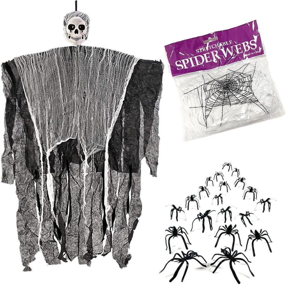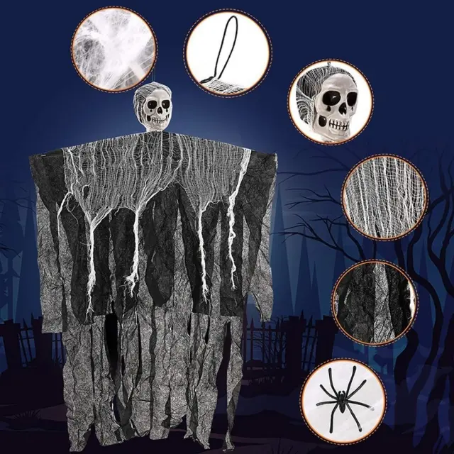 Dekorativni set ZDQC Halloween je idealna izbira za vse, ki želijo ustvariti temno in nepozabno grozljivo vzdušje v svojem okolju. Celoten komplet vključuje strašljivega visečega krvnika z impresivnimi dimenzijami, realistične plastične pajke in mehko raztegljivo pajkovo mrežo. Izdelek omogoča izjemno kreativne postavitve tako v zaprtih prostorih kot na prostem, od dnevnih sob do zunanjih dvorišč. Pajkova mreža je izdelana iz trpežnega materiala, ki ga je mogoče poljubno rezati in prilagajati različnim površinam, kot so pohištvo, vrata ali stene.