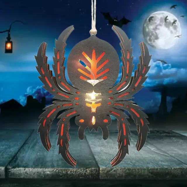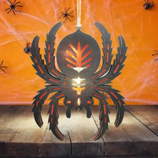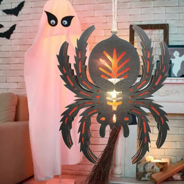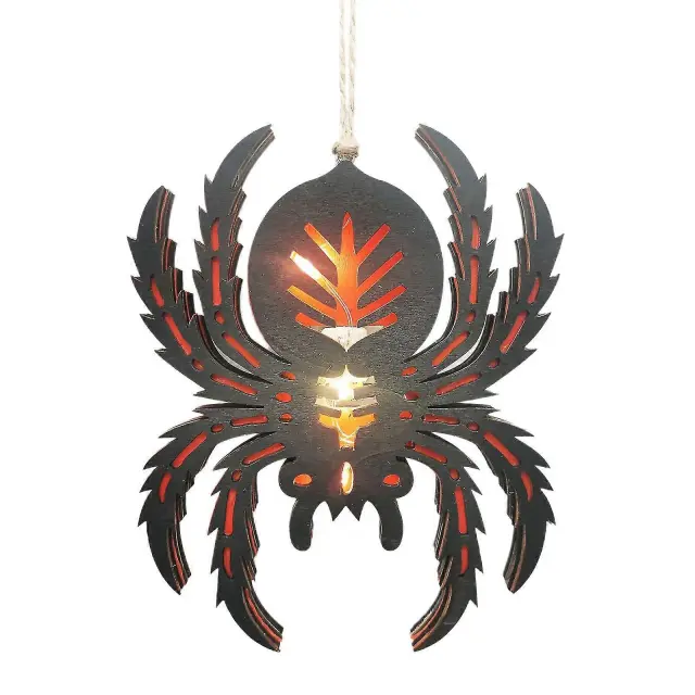 Noč Čarovnic Leseni Srhljivi Znaki Za Vrata Stene Viseči Dekor Lesen Pajek Viseča Svetloba Okraski Led Ambientalna Svetloba