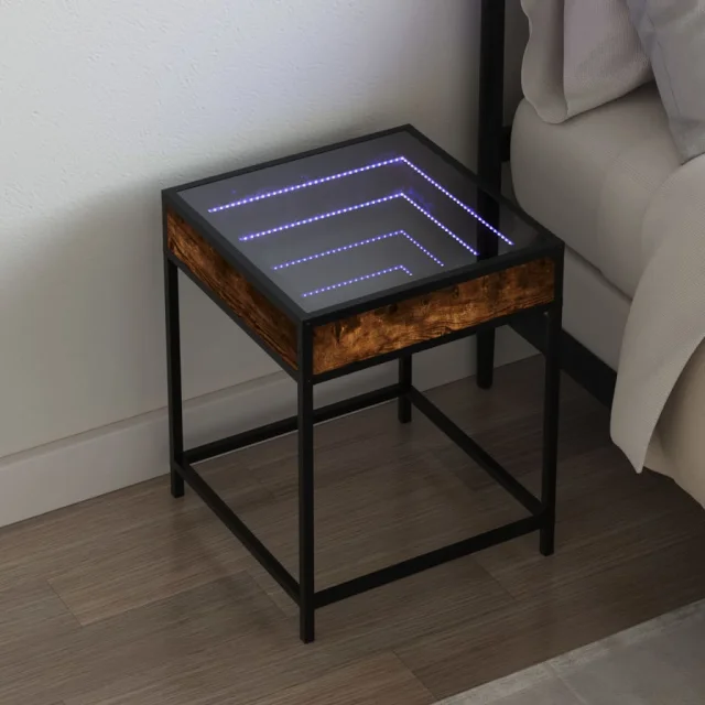 Ta nočna omarica z neskončnimi LED lučkami je brezčasen dodatek vašemu notranjemu dekorju.