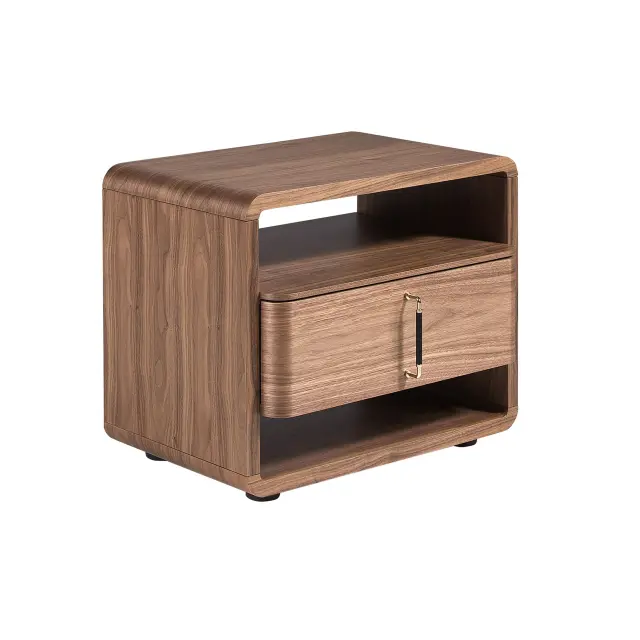- Ta elegantna nočna omarica iz naravnega orehovega furnirja debeline 0,5 mm bo vaši spalnici dala sodoben in drugačen pridih, ki ga iščete.