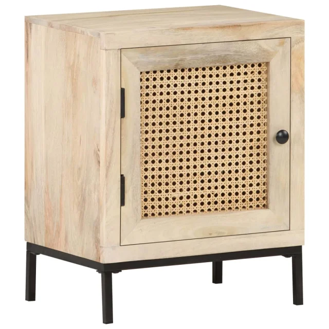 Nočna omarica - Nočna miza 40x30x50 cm trden mangov les in naravni trst