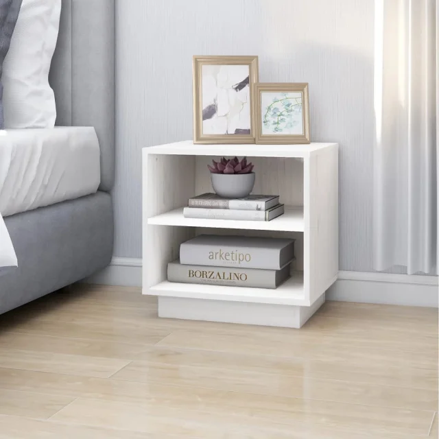 Nočna omarica - Nočna miza bela 40x34x40 cm trdna borovina