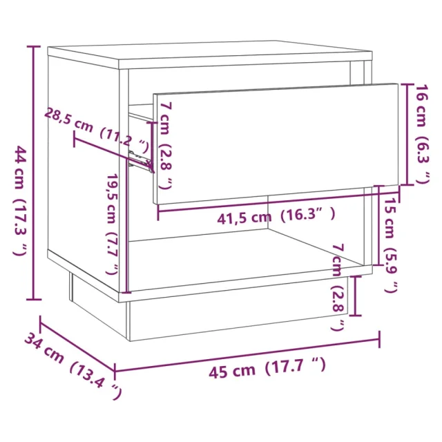 Ta nočna omarica ima močno in vzdržljivo konstrukcijo, zato je dolgotrajna. Predal in odprt predelek zagotavljata veliko prostora za shranjevanje majhnih stvari, da bodo lepo organizirane in na dosegu roke. Močna površina je idealna za postavitev svetilke, ure itd.