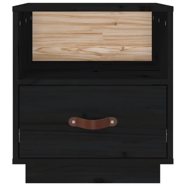 Nočna omarica - Nočna miza črna 40x34x45 cm trdna borovina