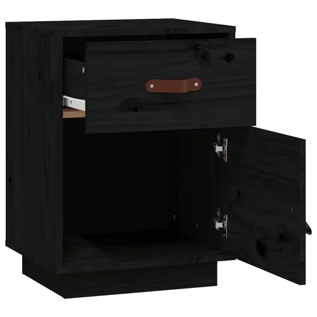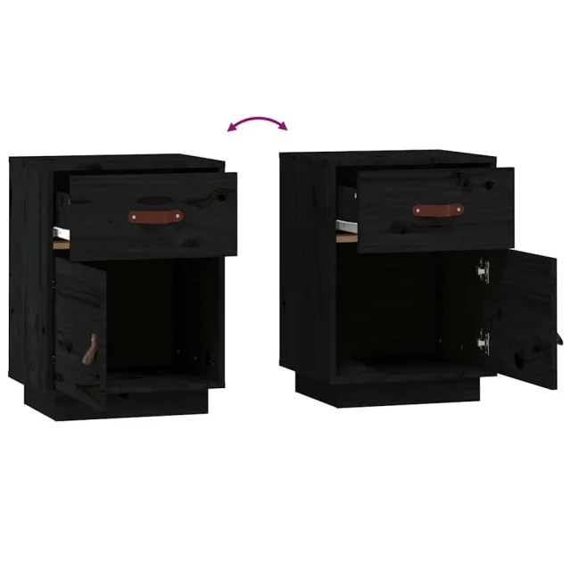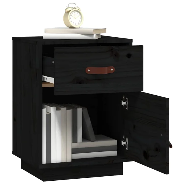 Nočna omarica - Nočna miza črna 40x34x55 cm trdna borovina