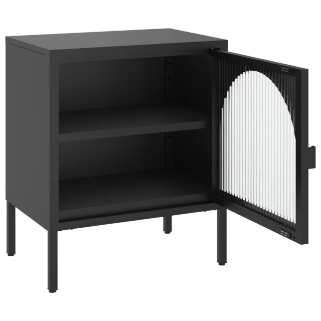 Nočna omarica - Nočna miza črna 50x35x60 cm steklo in jeklo