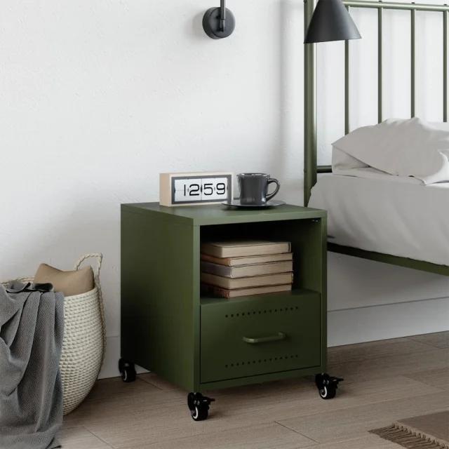 Nočna omarica - Nočna miza olivno zelena 36x39x43,5 cm jeklo
