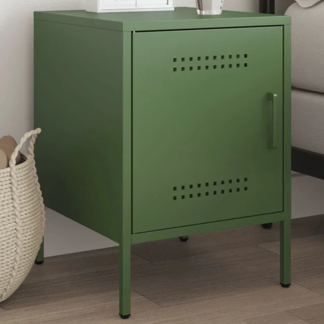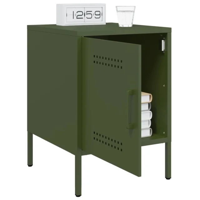 Nočna omarica - Nočna miza olivno zelena 36x39x50,5 cm jeklo